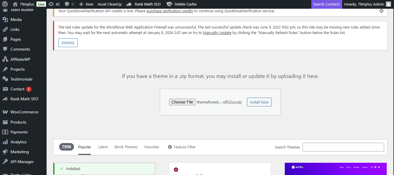 Since this theme isn’t in the official directory, you need to upload it manually. This method is very common for business owners who want a unique look that free themes might not offer.